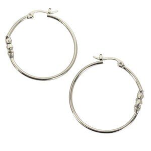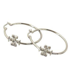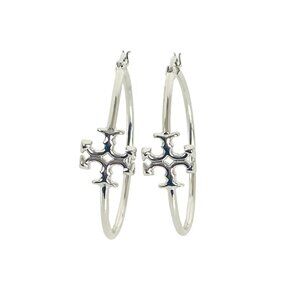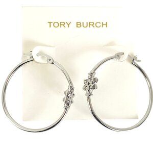Auth NEW Tory Burch Large Eleanor SILVER Logo Hoop Earrings Tag/Card/Dust Bag