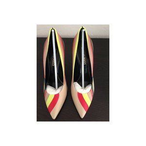 Auth NIB Pucci striped swirl print beige yellow orange pumps box bag EU 37 US 7