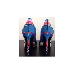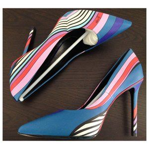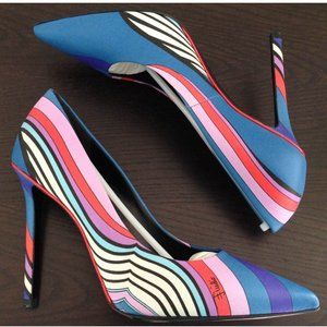 Auth NIB Pucci striped swirl print blue lavender red pumps box bag EU 37 US 7