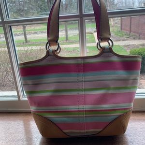 Auth New Coach Striped Satchel Hobo Purse