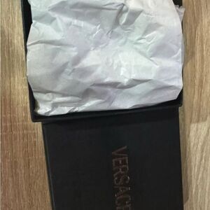 Auth New Leather Versace Cargo AirPods Case Black and Silver