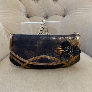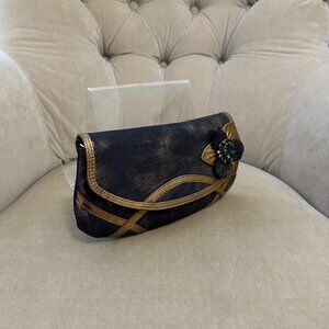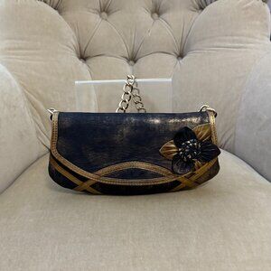 Auth PATRIZIA PEPE Italy Distressed Leather Flora Baguette Clutch Bag