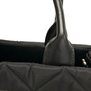 Auth PRADA - 1BA354 Black Nylon Leather Tote Bag