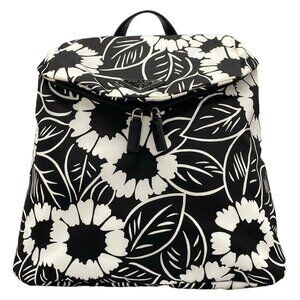 Auth PRADA - 2VZ095 Black White Tessuto Fiori (nylon) leather) Backpack