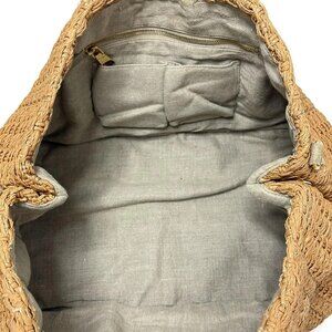 Auth PRADA - Brown Light gray Natural Fiber Hemp Tote Bag