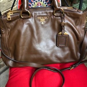 Auth Prada Vitello Double Zip Convertible Tote