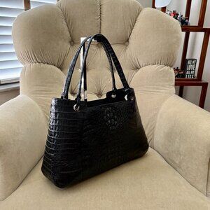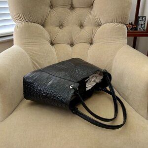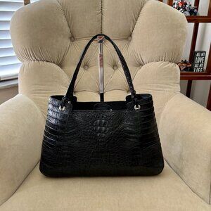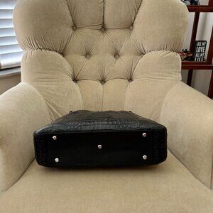 Auth RIVER Genuine Caiman Crocodile Luxurious Black Satchel Bag