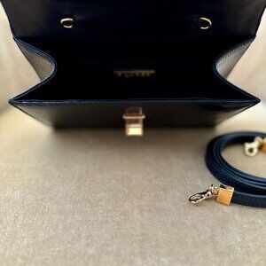 the signature Lana of London engraved gold tone hardware adornment on front clasp