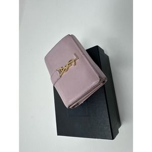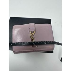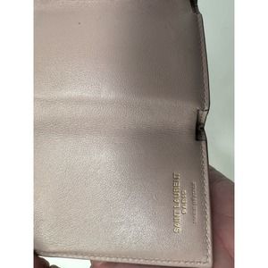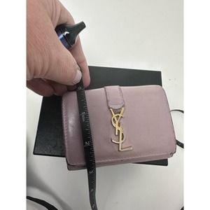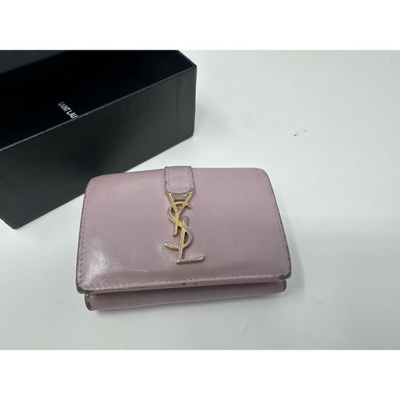 Auth Saint Laurent Fold Purse Mini Wallet Ysl Beige Pink Leather Pre- loved