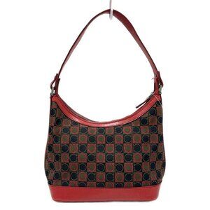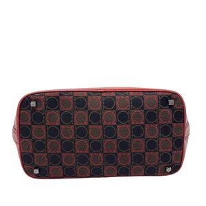 Auth Salvatore Ferragamo Gancini - Black Dark Brown Red Jacquard Leather