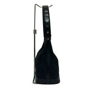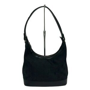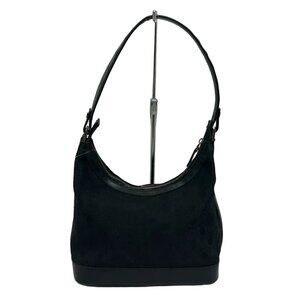 Auth Salvatore Ferragamo Gancini - Black Nylon Leather Shoulder Bag