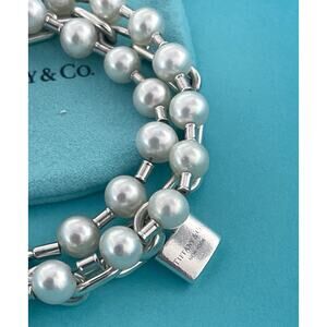 Auth Tiffany & Co. Hardwear Pearl Ball Lock Chain Link Wrap Bracelet 22” Silver