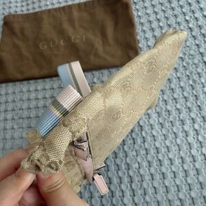 Auth VTG Gucci GG Canvas Brown Pink Blue Monogram Belt Bag Crossbody Fanny Pack Bumbag Bum Bag. Hard to find in baby pink leather trim! Comes with original dust-bag. Good condition--shows signs of wear, leather trim has come unglued for the front zippered pouch and inside tag--easy fix! Hardware shows wear and scratches, zippers show some discoloration. Corners and canvas in great shape. Belt in excellent shape. Taking offers but listing for authentication services.