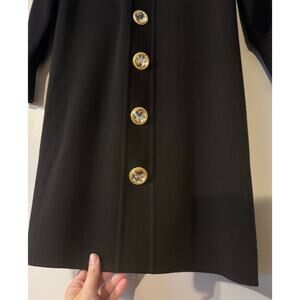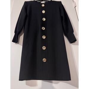 Auth. Vintage Yves Saint Laurent 80s Black Wool Sweater Midi Dress. Size medium. Ptp measures 19.5 inches across by 37.5 inches long. Sturdy shoulder pads. Pre-loved. Please note some signs of wear/age. Bottom backside of dress has a couple of snags that have started breaking through & a few on front bottom side of dress. See photos for all. If you have a good seamstress it can probably be fixed. Aside from those flaws it is a beautiful & classy, sweater dress. Made very well for colder weather. Crystal buttons measures 1.25 inches diameter. All buttons are in good sturdy condition. No tarnishing noted to gold edges. No other flaws noted. (#396A)