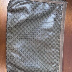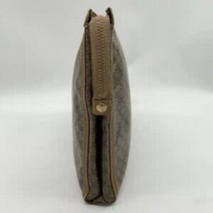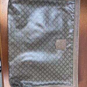 Auth Vintage Celine Macadam Pattern Crystal Leather Brown Clutch Bag
