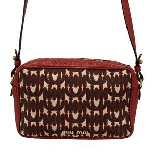 Auth miumiu - 5BH116 Red Jacquard Leather Shoulder Bag