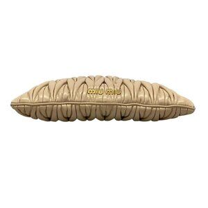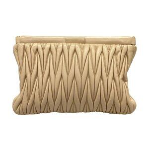 Auth miumiu Matelasse Beige Leather Clutch Bag