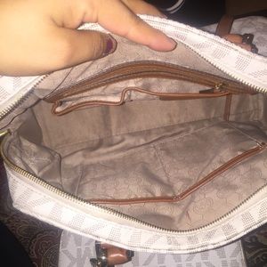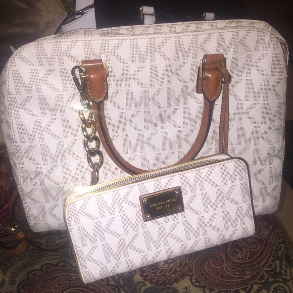 Purse is in very good condition no stains or rips L14" H11.5" W6" has a strap of 44" the wallet has one big pink mark and a tiny pink mark please see photos and ask all question priority on buying. The wallet is the big version .