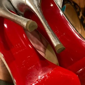 Awesome sling back open toe silver heels with wings