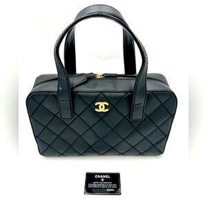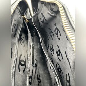 This Chanel purse is in very good condition. It shows a few scuffs / minor scratches from wear on some of the corners on the piping (see first corner pic where the piping shows a bit of wear). Missing one zipper pull. Zipper functions without the pull perfectly. Mild creasing on handle near body (see pic). Clean interior with no rips, pen marks or stains. The handbag holds its shape well and was well cared for. Please look closely at the pics.