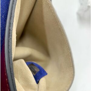 • Crafted from blue suede and burgundy calfskin leather