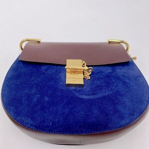 Auth Chloe Drew Mini Two Tone Leather Suede Navy Bordeaux Shoulder Bag