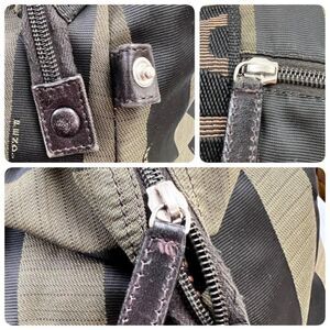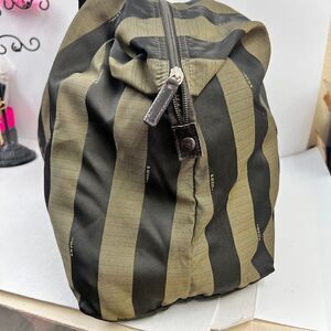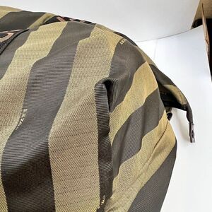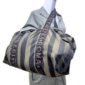 Auth Fendi Logo Weekender Overnight Pequin Stripe Bag Olive Canvas