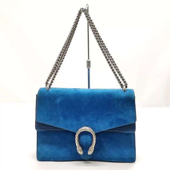 Auth Gucci Cerulean Blue Suede Dionysus Shoulder Bag Medium