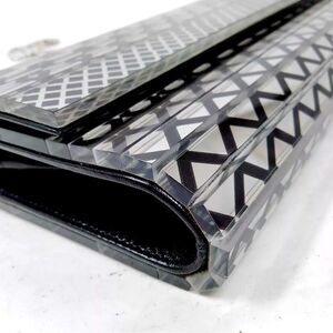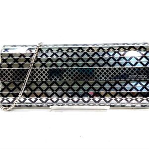 Auth Jimmy Choo Black & Clear Diamond Print Acrylic Sweetie Clutch Silver Chain