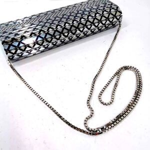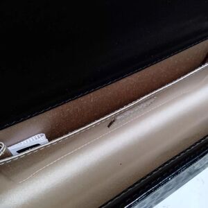 This preloved evening bag / clutch with chain is in very good condition with a few scuffs and marks on the exterior as well as some faint scratches and tarnish to the hardware.