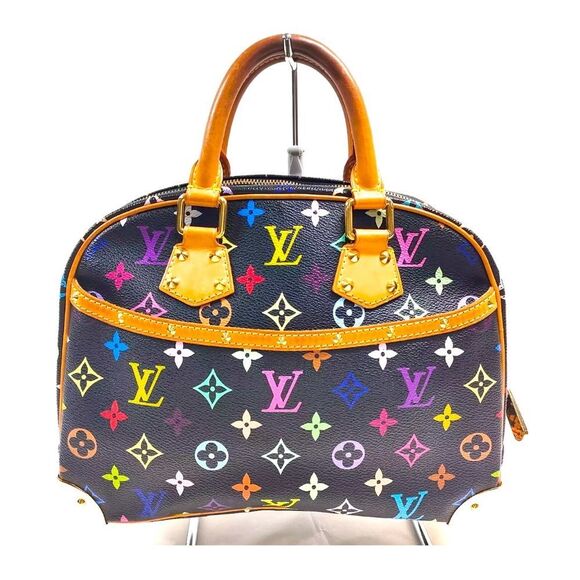 Auth Louis Vuitton Black Monogram Trouville Murakami Multicolor