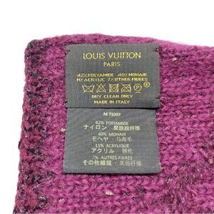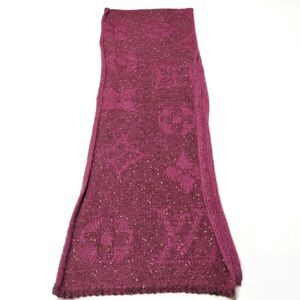 Authentic Louis Vuitton Mohair Glitter Knit LV Scarf Sunset Monogram Design in Prune (Burgundy Purple Hues)