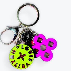Auth Louis Vuitton Goldtone Key Ring Purse Accent Pink Green Preloved Bag Charm