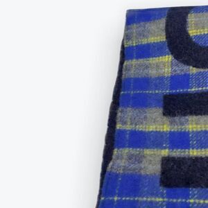 Auth Louis Vuitton Logo Plaid Blues Wool Cashmere scarf