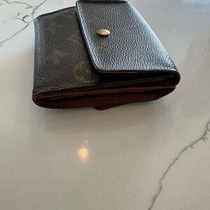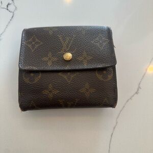 Auth.Louis Vuitton Monogram Bi-fold Card Wallet W/ gold hardware with coin pouch