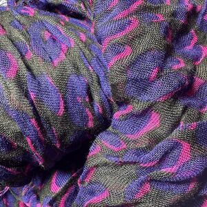 • Crafted from cashmere / silk blend overlaid in a leopard print with Stephen Sprouse graffiti signature printed in purple, green and magenta