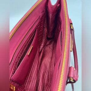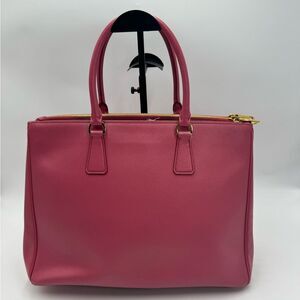 Auth Prada Pink Saffiano Leather Double Zipper Lux Galleria Tote Bag