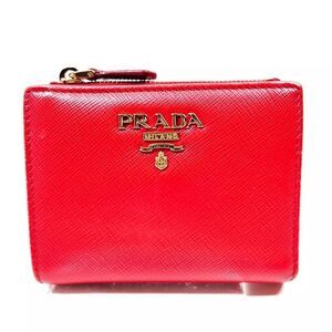 Auth Prada Red Saffiano Leather Compact Bifold Wallet Preloved On Sale Now Prada