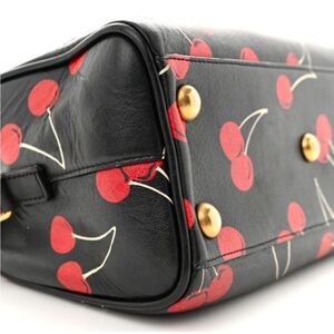 Auth Saint Laurent Calfskin Cherry Print 2way Classic Baby Duffle Bag Black Red