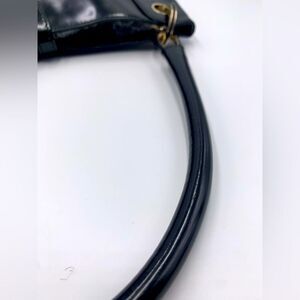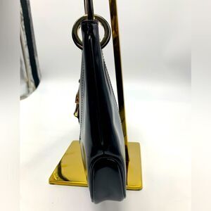 Beautiful shiny black patent leather 90's Gucci day through night shoulder bag. Easy to every day and plenty of room for all of your essentials. Single compartment pouch with interior pocket. Shiny silver metal closure and single Leather strap.