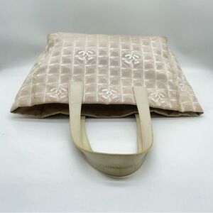 Authe Chanel New Travel Line Canvas Beige Tote Bag W/Bag