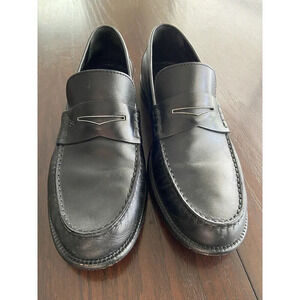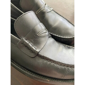 Authentic 100% LOUIS VUITTON Mens Shoes Black Loafers Size 7.5 LV fits 8.5 US