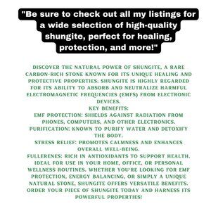 With its sleek, black luster, Shungite not only protects and heals but also enhances the aesthetic of any space. Whether you use it for energy work, EMF protection, or as a statement piece, Shungite actively supports your well-being in both practical and beautiful ways.