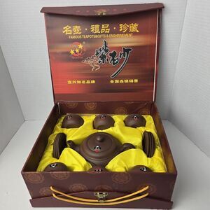 Yixing clay teapots, also known as Zisha or Purple Clay teapots. This set is perfect for any tea lover or collector of Asian culture and collectibles.The teapot absorbs and retains the flavors and aromas of the tea. The more you brew tea in it, the richer and more complex your tea tastes. These pots also help to keep the tea warm for longer periods of time.