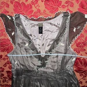 LITHE DRESS Women's Gray Embroidered Cap Sleeve Dress