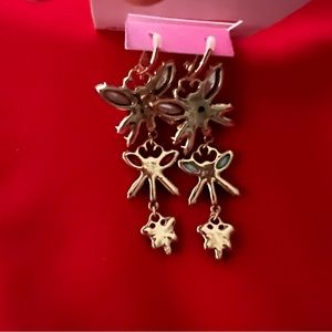 These enchanted earrings are set in polished gold-tone metal with a lever back closure.