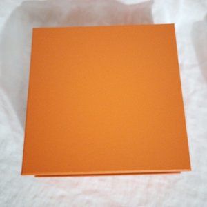 Authentic small square Hermes box with original tissue paper in it. Could be used as a gift box or a storage box for clothing, etc. It has a small imperfection on the upper left side, but overall it's in nice condition. (Please see photos.)