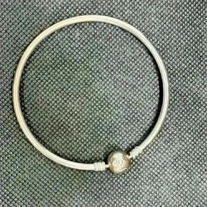 Authentic 925 ALE Silver Moments Pandora Bangle Bracelet. The bracelet is 2 1/4 inches interior diameter.