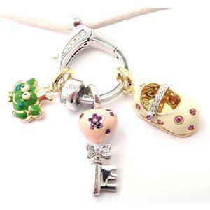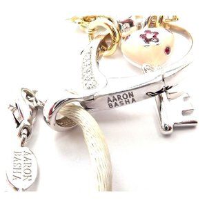 Authentic! Aaron Basha 18k White Gold Diamond Enhancer 3 Charms Spacer Necklace