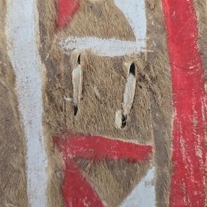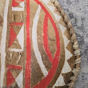 Authentic African Maasai Shield 25 Inches Long x 16 inches Wide Tan Red White